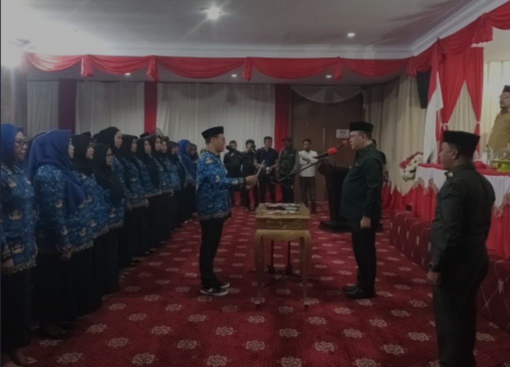 Prosesi pelantikan 126 kepala sekolah dilakukan oleh Bupati Ruksamin di Aula kantor Bupati Konut, pada Senin (30/12/2024) malam.