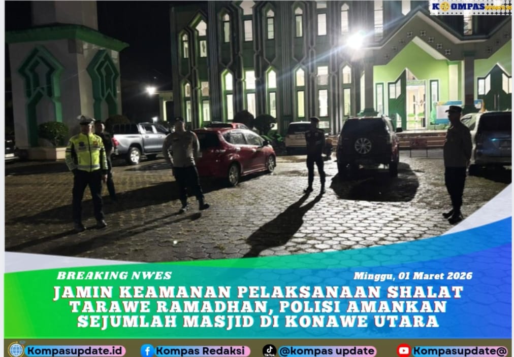 Kompasupdate.id – Jajaran Polres Konawe Utara melaksanakan kegiatan pengamanan, patroli, serta monitoring potensi kerawanan gangguan keamanan dan ketertiban masyarakat (kamtibmas) saat pelaksanaan salat tarawih di wilayah hukumnya, Minggu malam (1/3/2026).