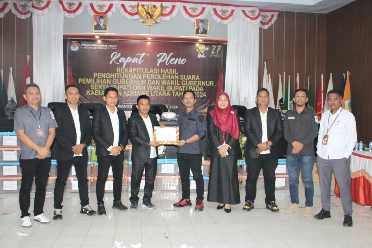 Usai menetapkan rekapitulasi perolehan suara calon bupati dan wakil bupati, KPU Konut menyerahkan salinan rekapan itu kepada saksi calon dan Bawaslu. Rekapitulasi perolehan suara ini juga sudah diunggah diaplikasi Sirekap.