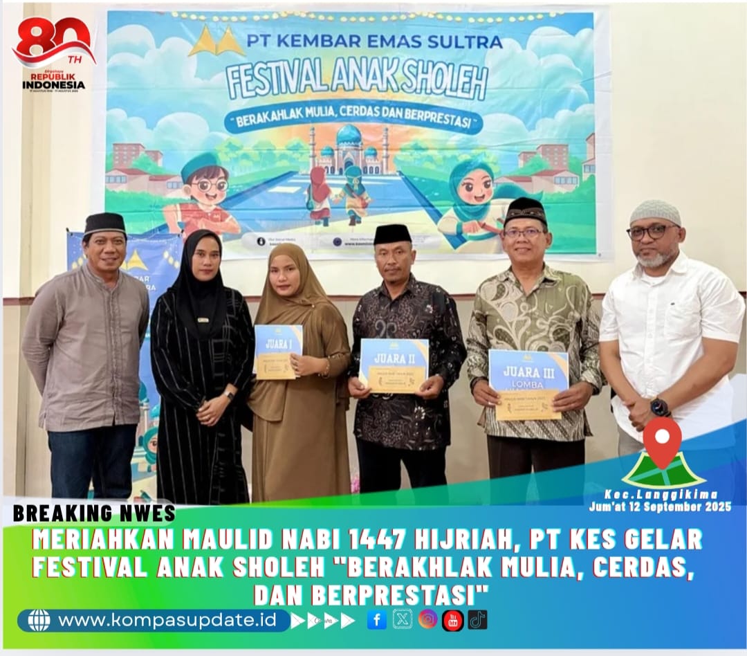 Konawe Utara, Kompasupdate.id – PT Kembar Emas Sultra (KES) SK 321 kembali menunjukkan kepeduliannya terhadap masyarakat lingkar tambang dengan menggelar Festival Anak Sholeh dalam rangka memperingati Maulid Nabi Muhammad SAW 1447 Hijriah.