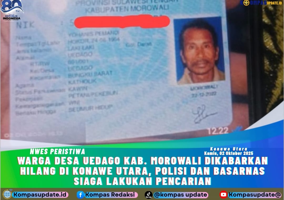 Kompasupdate.id – Seorang lelaki bernama Yohanes Pemanoi (61) dikabarkan hilang setelah berkunjung dirumah keluarganya di desa pondoa Kec. Wiwirano Kab. Konawe Utara (Konut), Sulawesi Tenggara (Sultra)